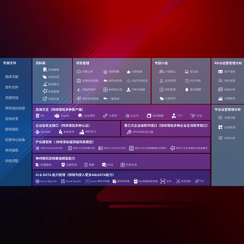 医疗器械产品上市前,,,,要熟悉严格与繁复评审标准,,,整理分析监管机构指导文件中的海量信息。。。企业急需一个智能化解决方案,,,提升知识管理效率,,,,提高评审通过率,,,,以提升其市场竞争力。。
